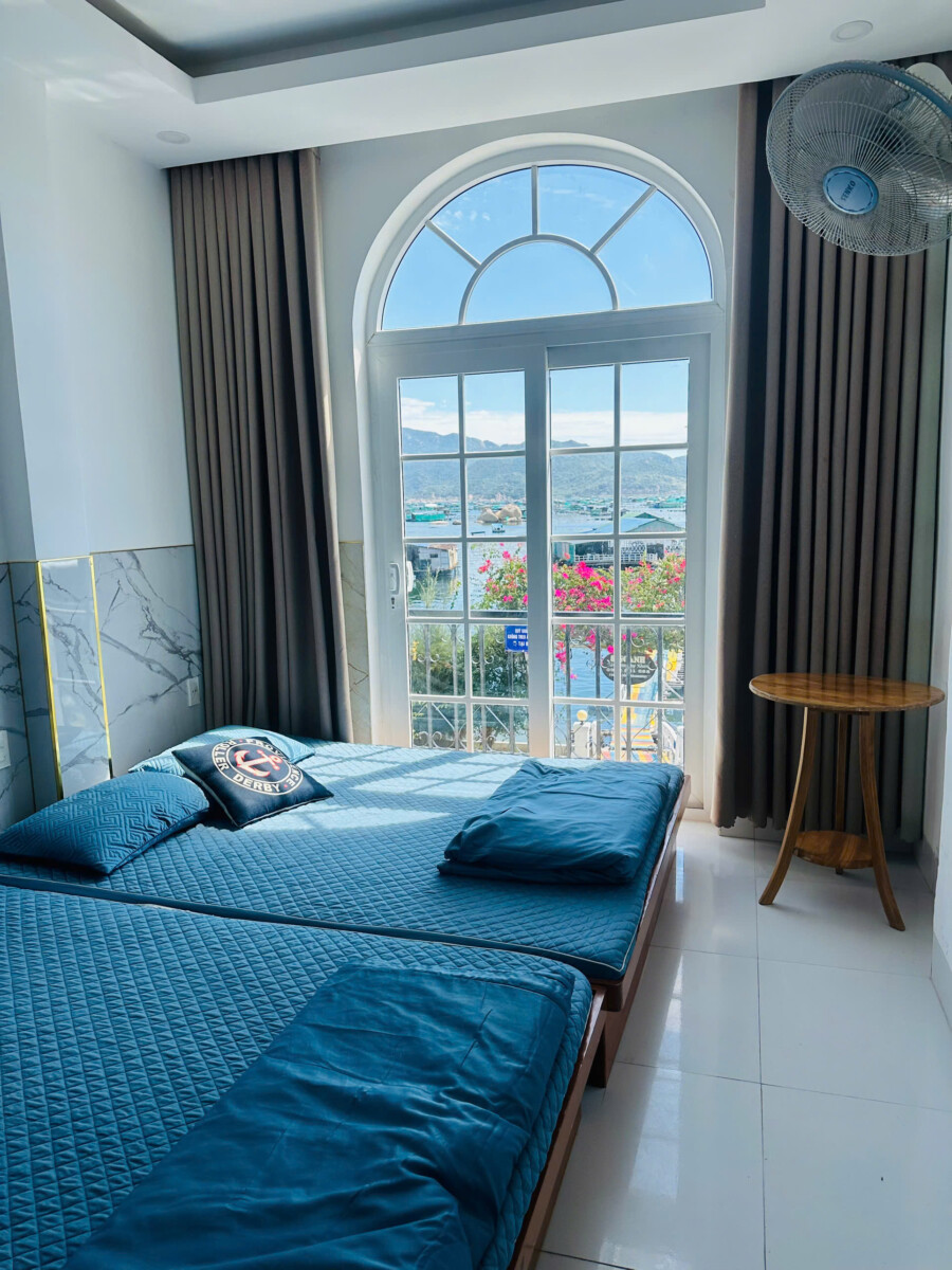 - Giường đôi view biển tuyệt đẹp tại khách sạn Sơn Anh, Bình Ba – nơi lý tưởng để thư giãn và tận hưởng bình minh trên đảo.